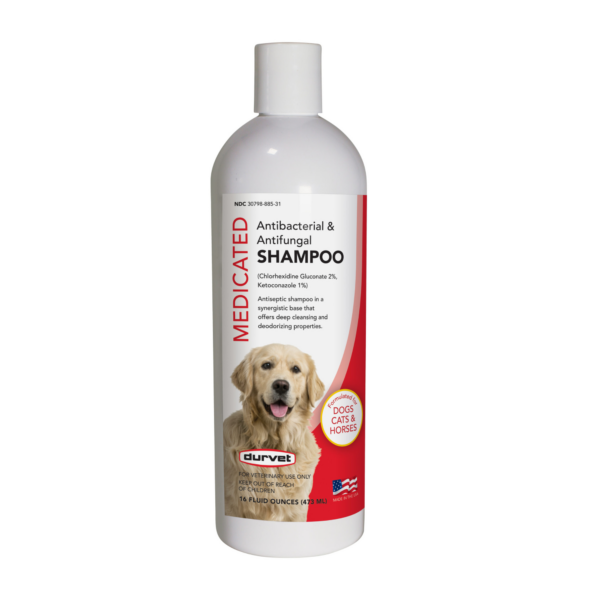Antibacterial and Antifungal Shampoo is a pleasantly-scented antiseptic shampoo designed for dogs, cats, and horses with dermatological conditions responsive to chlorhexidine and ketoconazole. Dogs, Cats and Horses